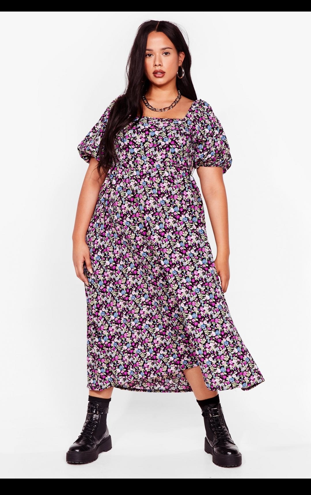 Next we have a floral midi puff sleeve Smock dress. Love the colours in this and would look great with a pair of biker boots for a causal spring walk.