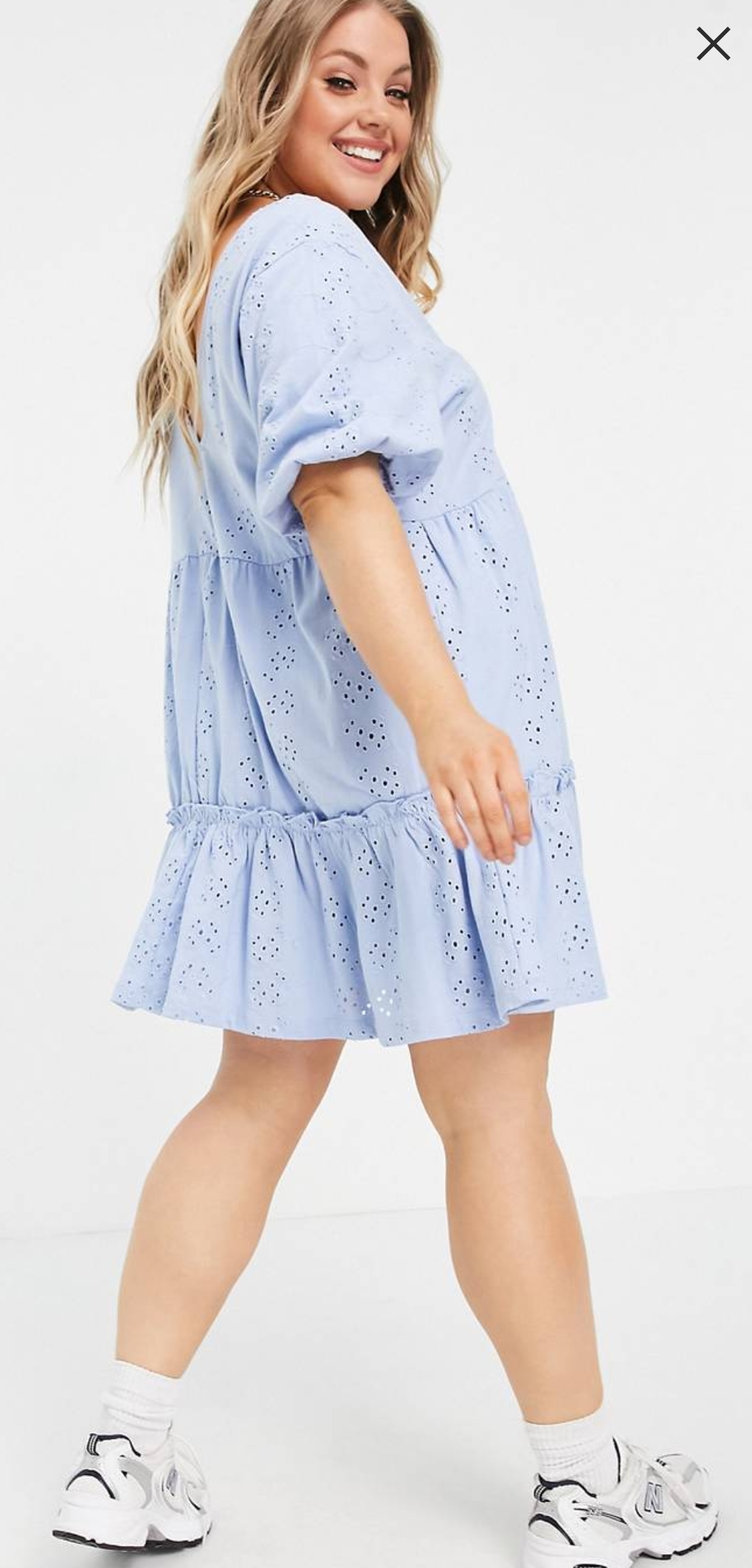 Last from asos is this blue Smock dress in a cornflour blue and puff sleeves. You can wear an effortless day to night outfit by adding a pair of heals and accessories.