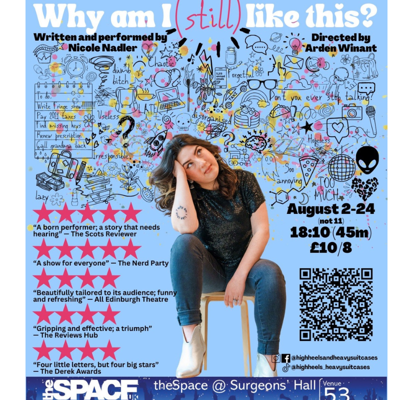 Nicole Nadler (High heels and heavy suitcases) brings her one woman show Why Am I (Still) Like This a sequel to her last show (why am I like this) to Edinburgh fringe festival after her success of 2023.