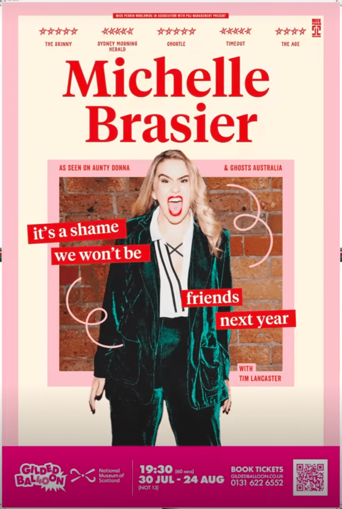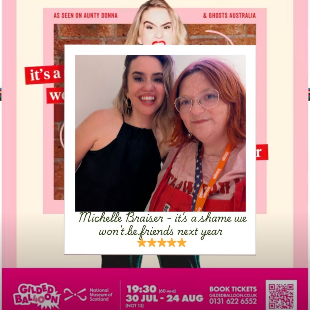 It’s a Shame We Won’t Be Friends Next Year is a Fringe highlight. It’s fast, furious, and full of heart. Michelle Brasier proves once again that she’s a powerhouse performer with something important to say—and she says it with style, soul, and a whole lot of sparkle.
